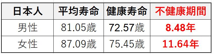 平均寿命から健康寿命を差し引いた、不健康期間がとても長いのです。